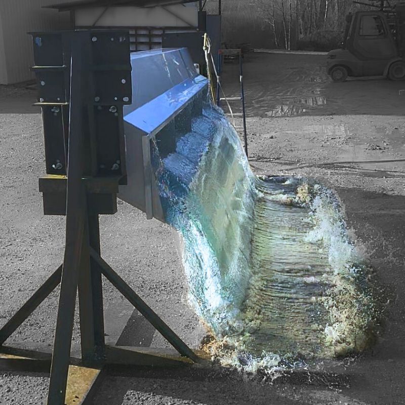 - • Essais de basculement en eau et d'étanchéité des augets
